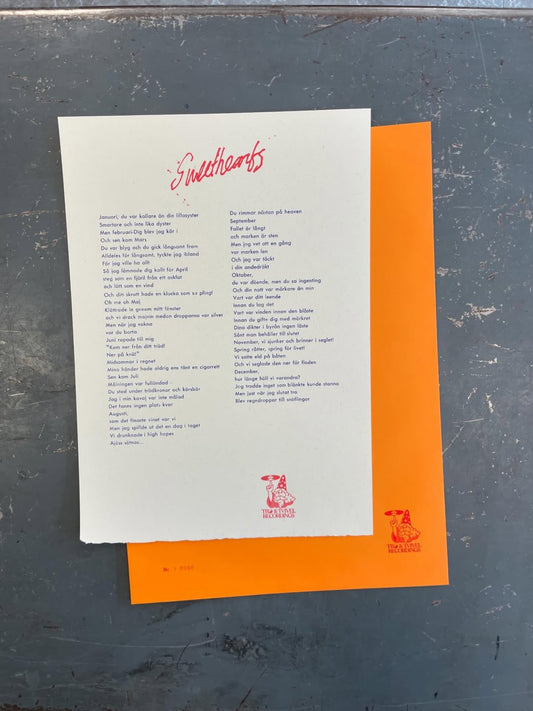 "Sweethearts" Letterpress Lyric Sheet – 102 numrerade exemplar
